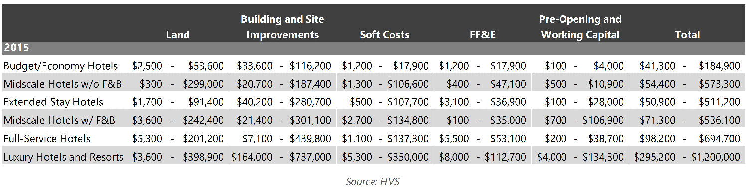 PER-ROOM HOTEL DEVELOPMENT COSTS