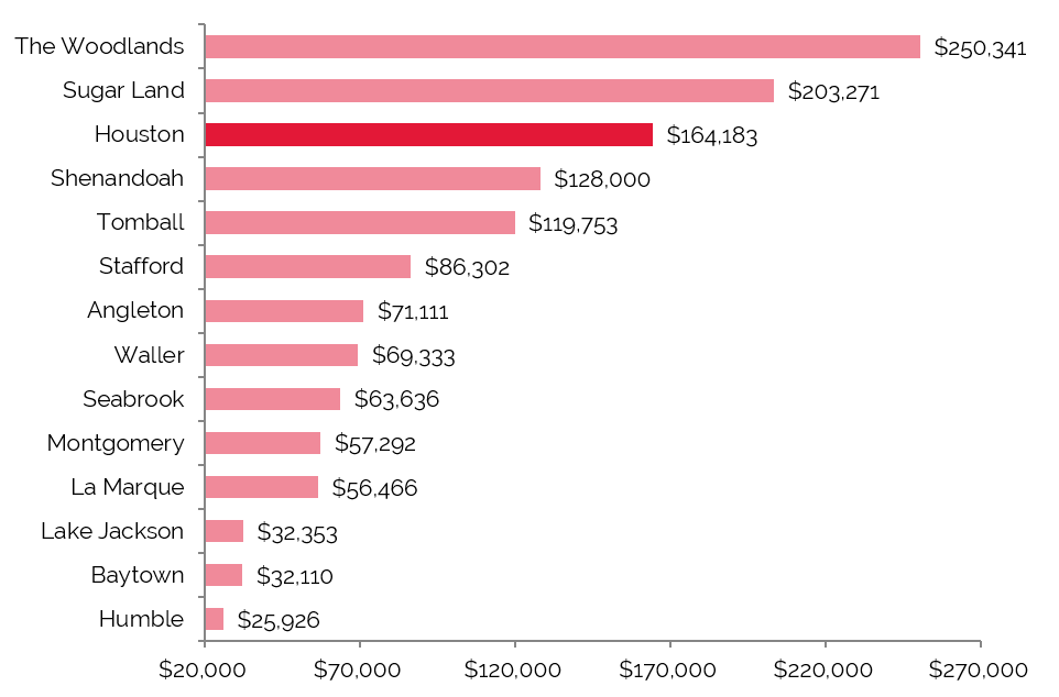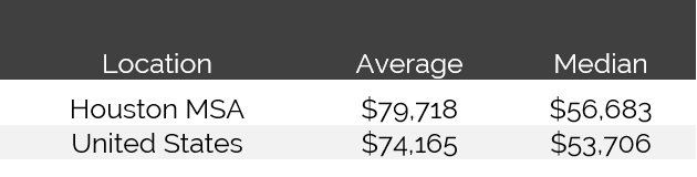 Houston’s forecasted 2015 average and median household incomes are strong in comparison to the nation.