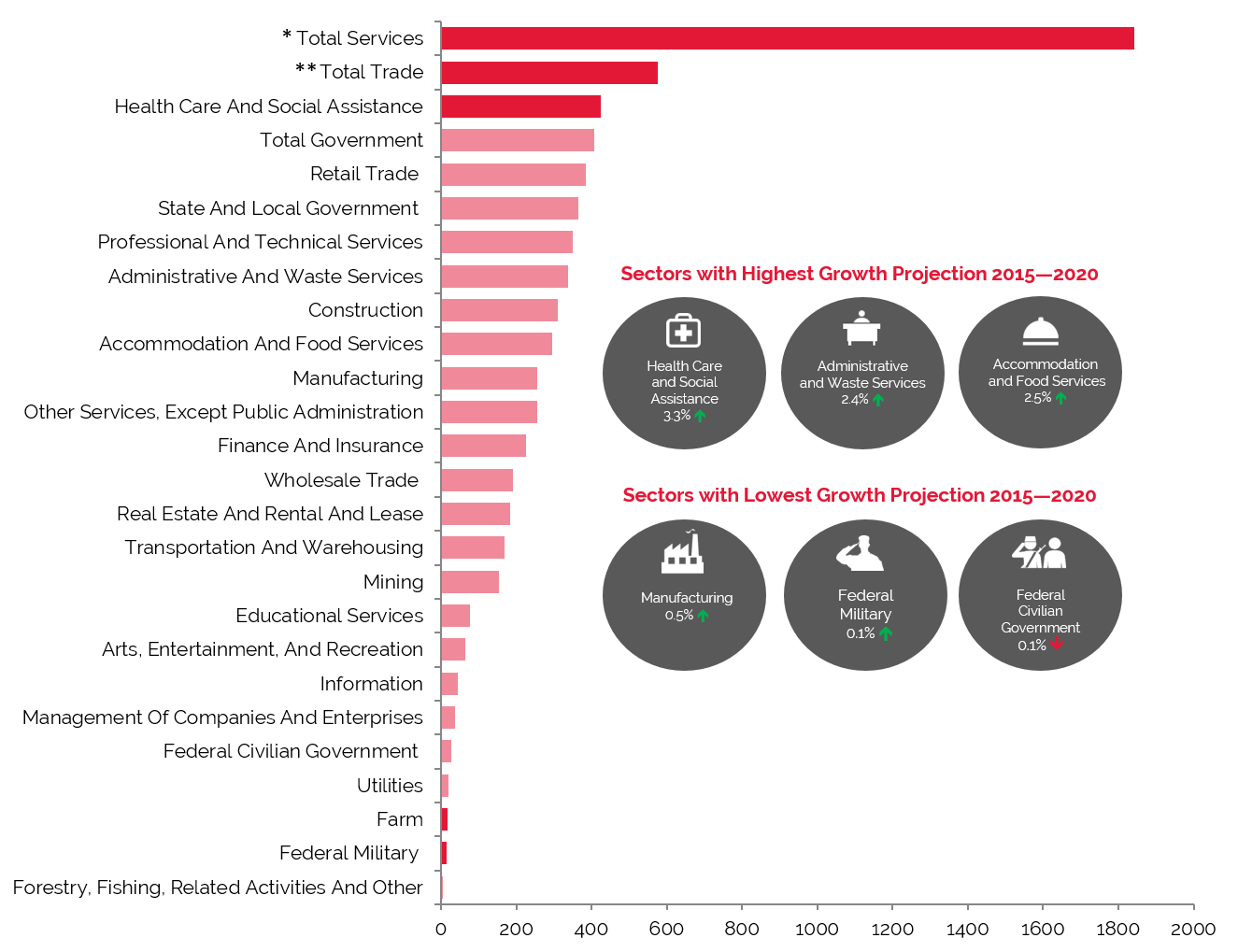 * Total Services include Professional and Technical Services; Management of Companies and Enterprises; Administrative and Waste Services; Educational Services; Healthcare and Social Assistance; Arts, Entertainment, and Recreation; Accommodation and Food Services; and Other Services, except Public Administration