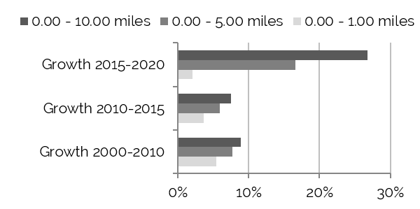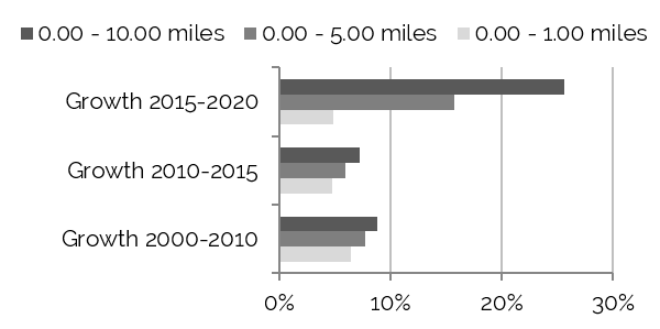 Household Growth Most Stable within Five-Mile Radius 2015–2020