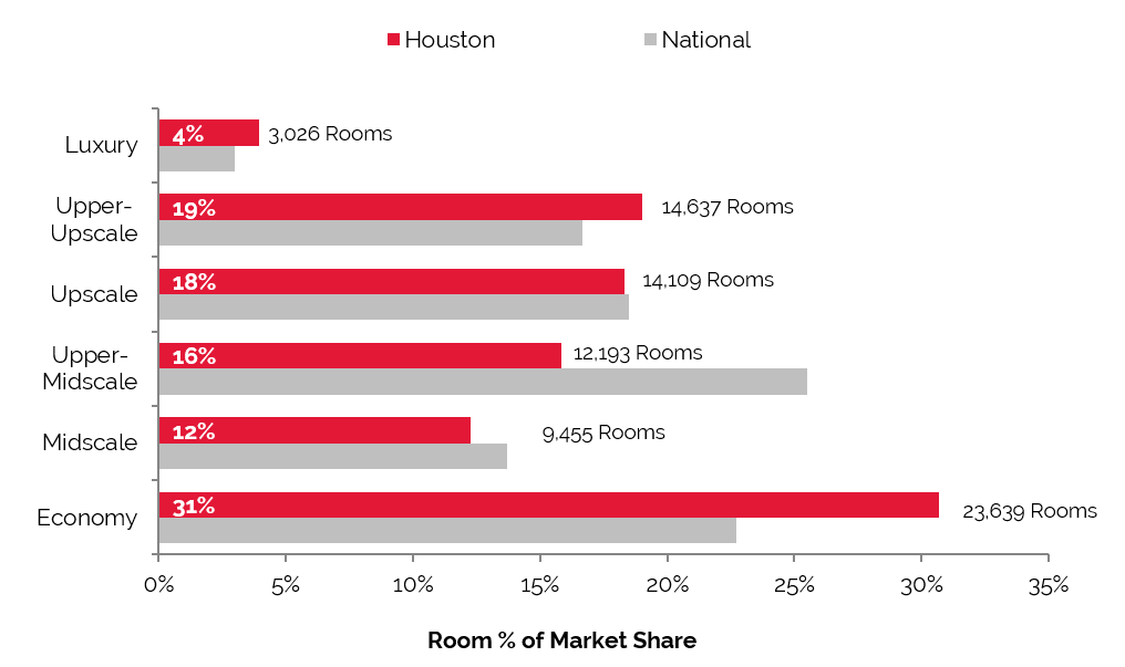 Largest Portion of Rooms in Houston is Economy,