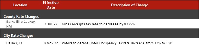 In addition to the state and local rate changes that took place during fiscal year 2021, HVS projects the following changes for fiscal year 2022 and beyond.